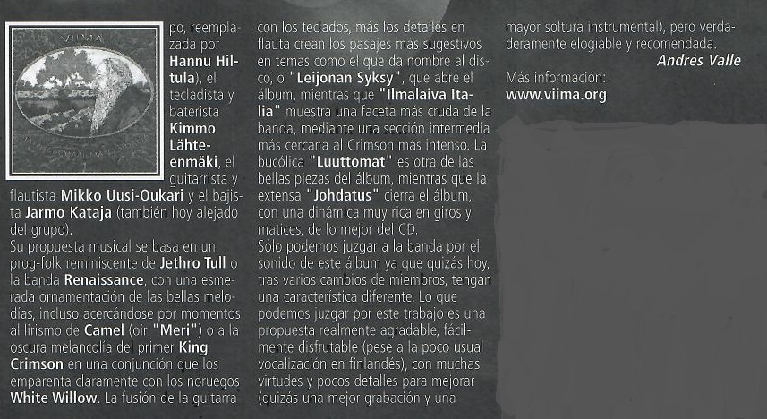 Combo Finlandais évoluant dans un registre musical folk-progressif symphonique, VIIMA est originaire de Turku. Le groupe,