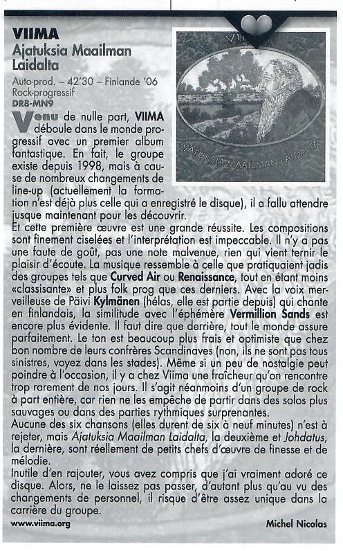 Ce 1er album de VIIMA, formation finlandaise du guitariste MIKKO UUSIOUKARI, publié en 2006, distille une musique