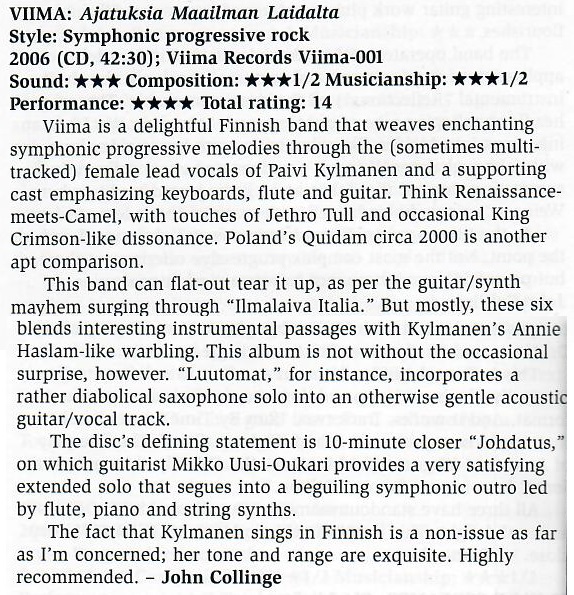 varsinkin lopetuskappale ”Johdatus” on kuin pieni sinfoninen teos. Viiman albumi on hieno lisäys