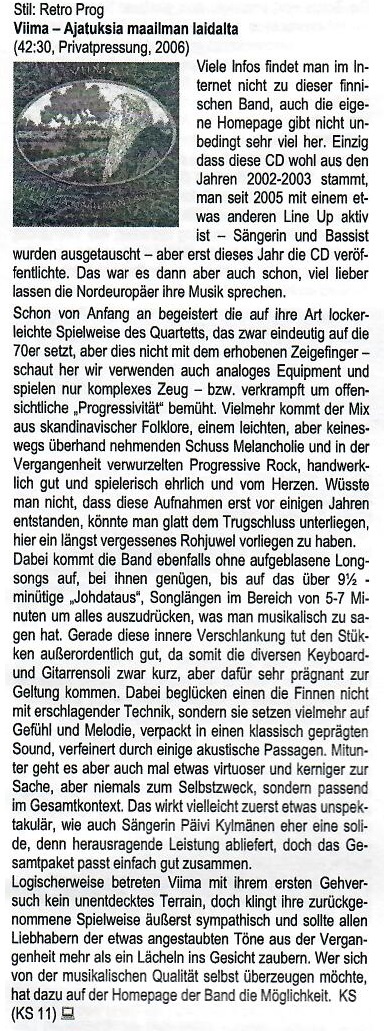 koko ajan. Viima soittaa brittiläisen progeperinteen mukaista musiikkia, jonka juuret ovat