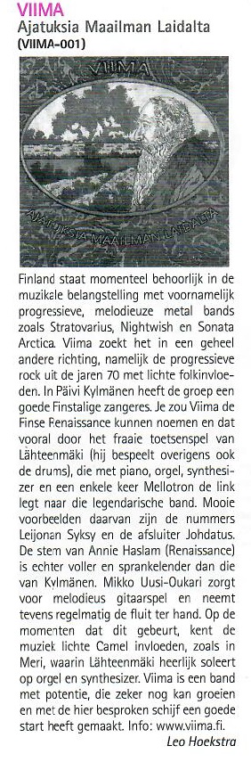 ”Ajatuksia maailman laidalta”. Viiman musiikin perusilme on melko rauhallinen ja melodinen